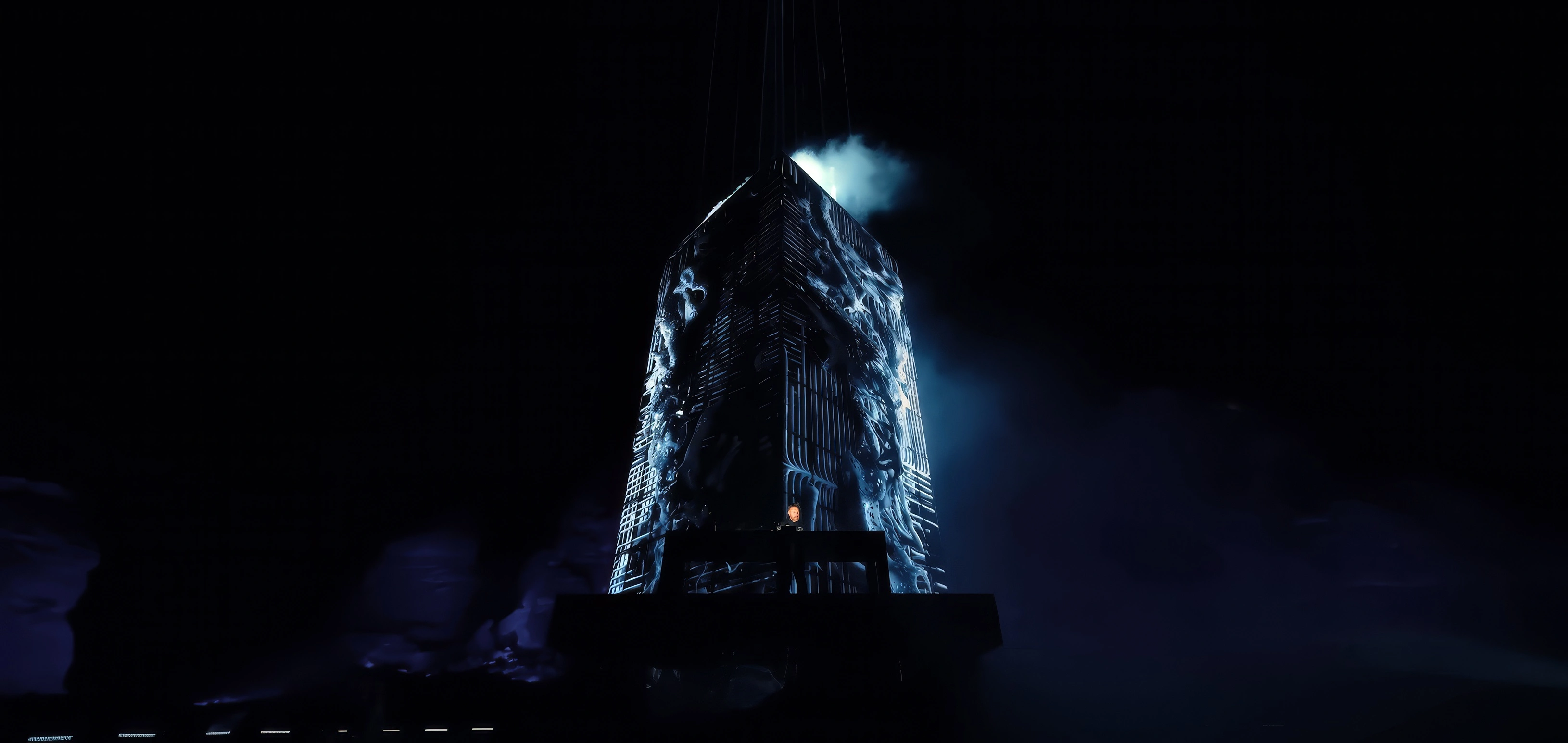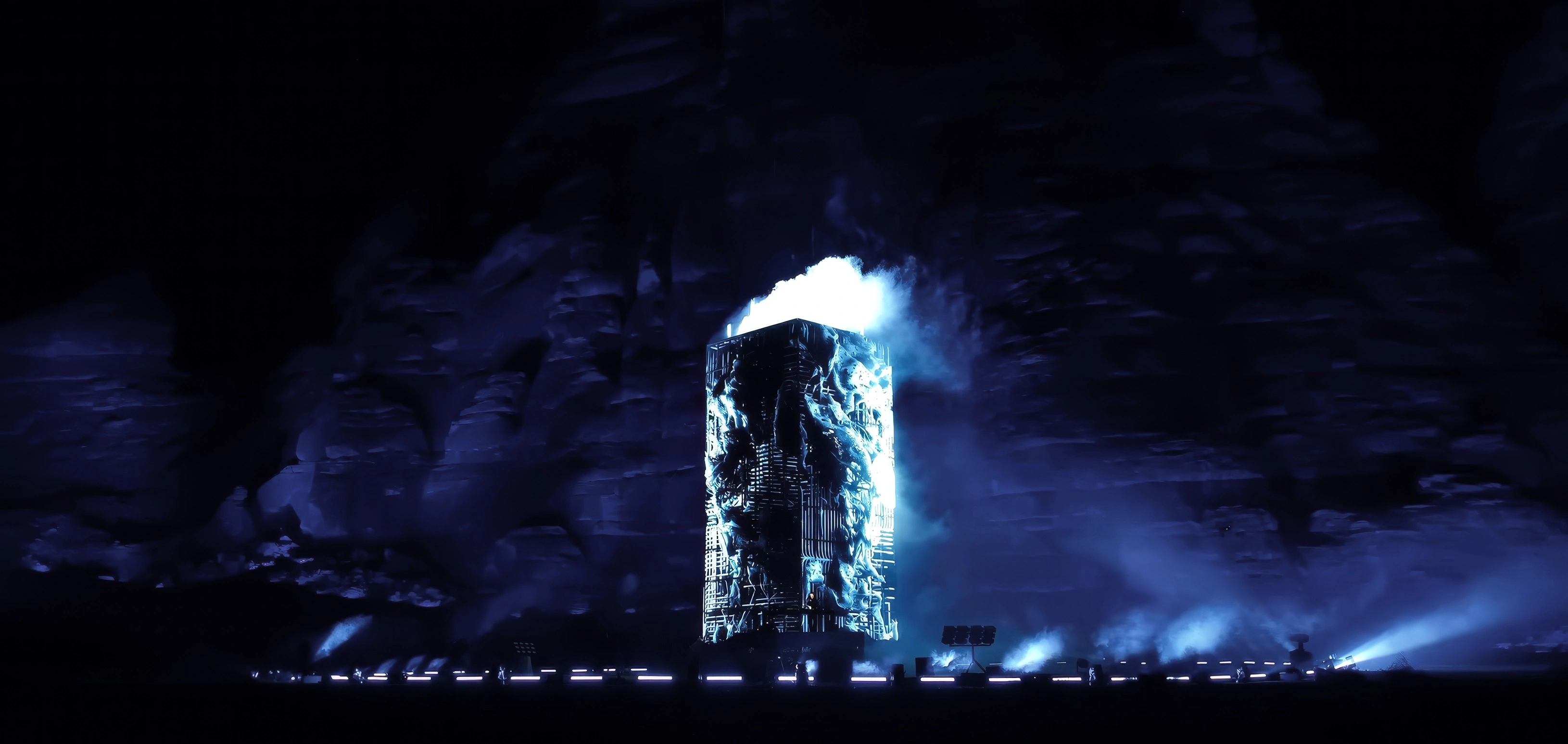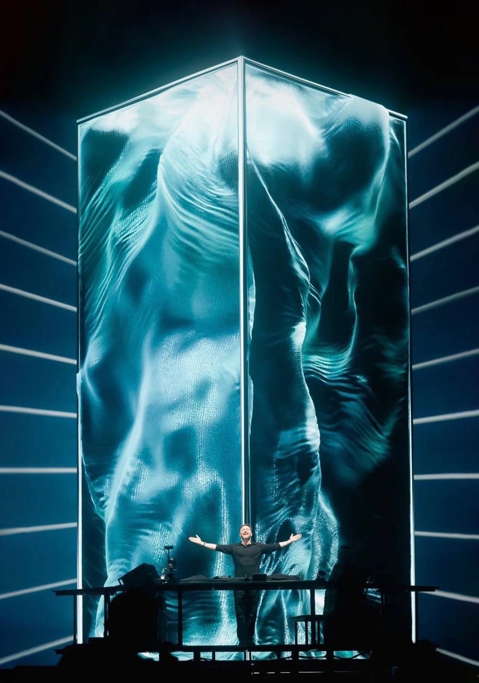 For David Guetta’s Monolith show, the visuals are structured as a series of evolving themes rather than a fixed narrative. Each sequence introduces its own visual language ranging from flowing cloth simulations that reveal organic, sculptural landscapes to magnetic forces drawing particles within the monolith into dynamic spatial formations. The content employs deliberate perspective manipulation to enhance depth, scale, and spatial perception.