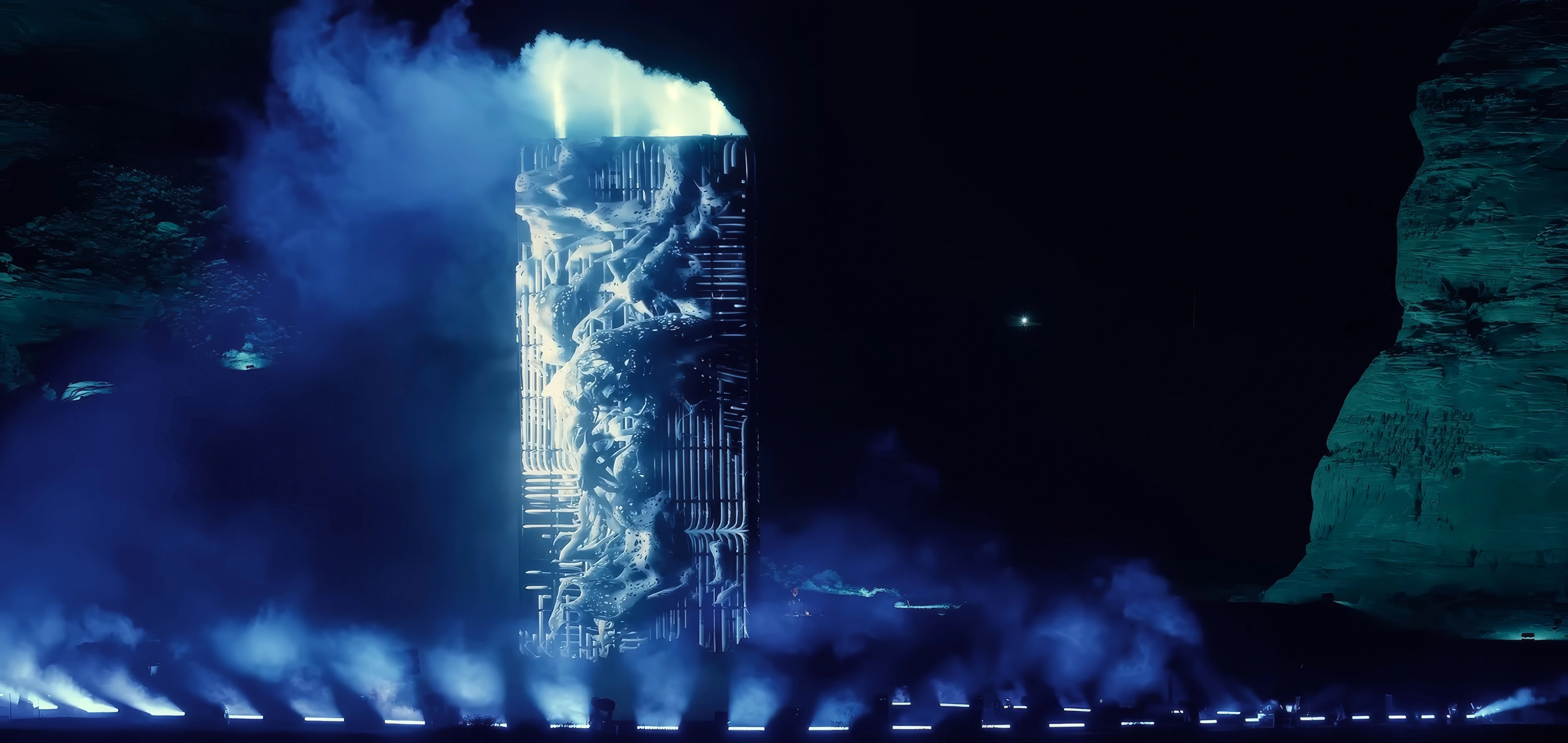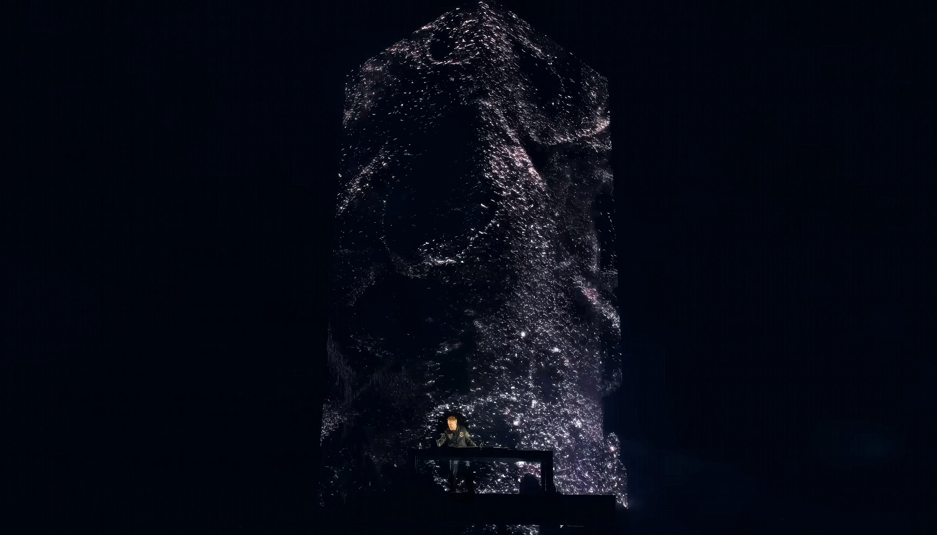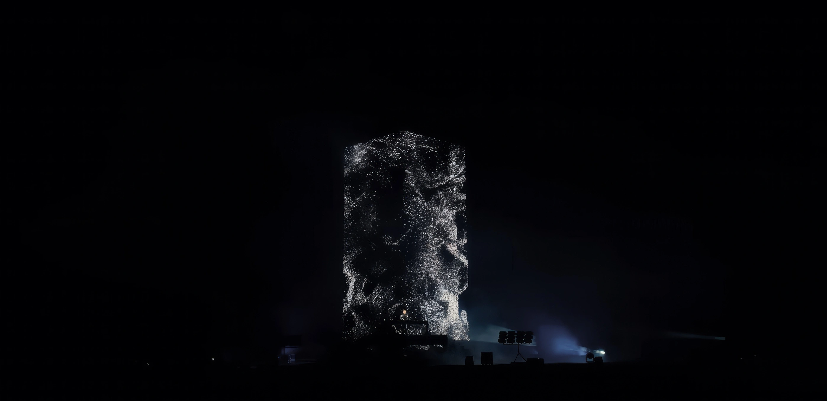 For David Guetta’s Monolith show, the visuals are structured as a series of evolving themes rather than a fixed narrative. Each sequence introduces its own visual language ranging from flowing cloth simulations that reveal organic, sculptural landscapes to magnetic forces drawing particles within the monolith into dynamic spatial formations. The content employs deliberate perspective manipulation to enhance depth, scale, and spatial perception.