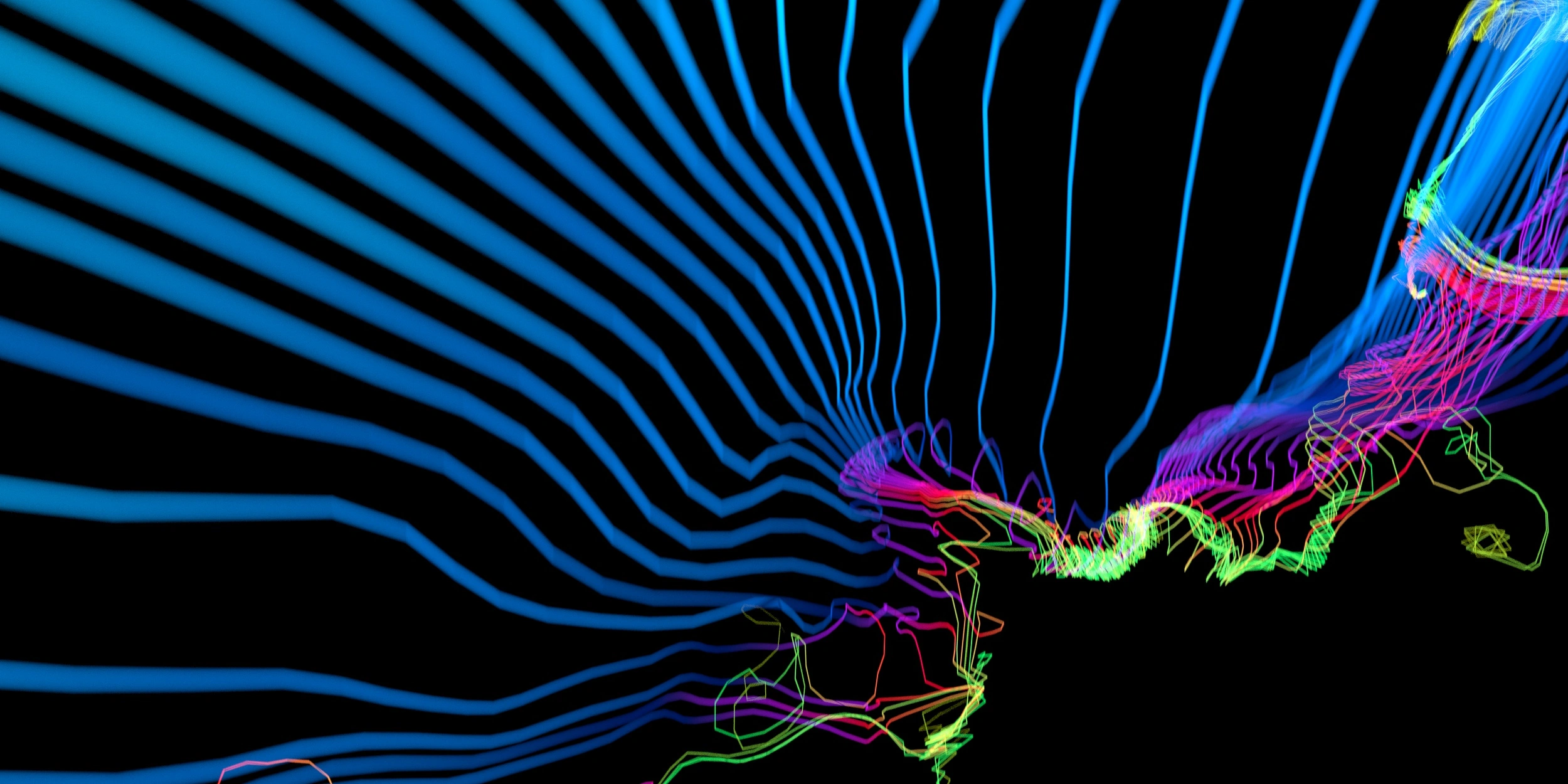A collection of abstract visuals where linear forms move through noise, creating interesting directions and compositions.